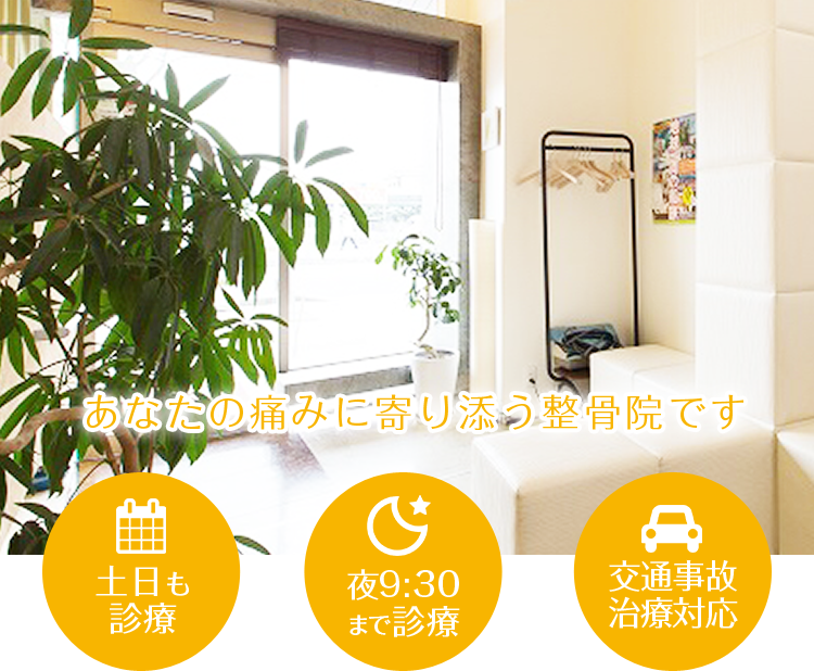 仕事帰りの患者さんでも通院いただけますので、遅い時間でもお気軽にご来院ください。